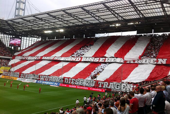 Fc köln e.v., südkurve köln, derby gladbach, alle in rot, come on fc!, kämpfen und siegen!
